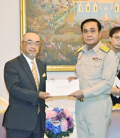 タイのプラユット暫定首相は16日、バンコクの首相府で佐渡島志郎駐タイ大使に対し、西日本豪雨の被災地に向けた義援金500万バーツ(約1700万円)を贈った。>>384