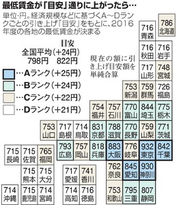 現在、日本の最低賃金幅は714円から932円の間。