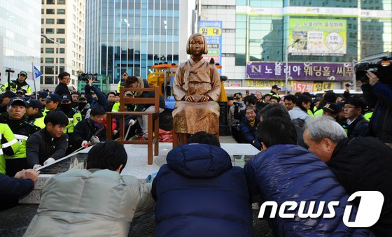 約5000人の市民からの寄付8500万ウォン(約850万円)で作られた釜山少女像は、昨年12月31日に日本領事館前に設置された時から問題になっている。少女像を設置する当時、市民団体と釜山市東区庁公務員の衝突があった。保守派の攻撃も多かった。結局、チョン・ミョンヒ釜山市議会議員が少女像を釜山市が体系的に管理できるよう条例を先月発議し、通過させた。