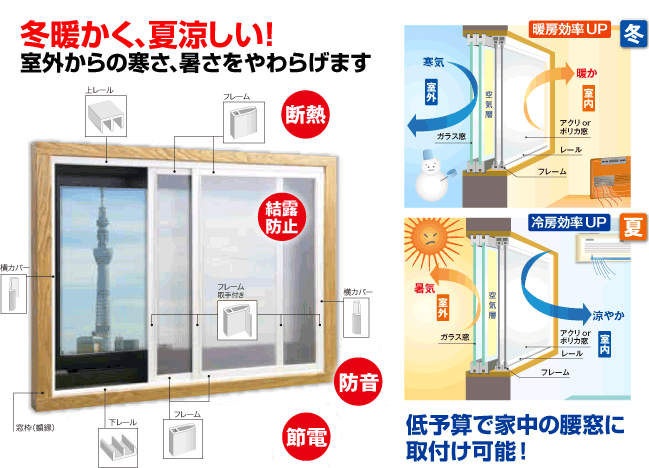 3、窓に貼るシール。窓ガラスの内側に半透明のシールを貼って熱を遮断します。冬は結露防止になります