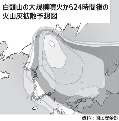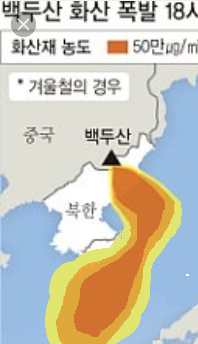 白頭山が噴火しても周辺に被害が及ぶ程度だが?以前にTVで見た時は近くの中国、ロシアの土地やら北朝鮮のほぼ全体に火山灰が降り注ぐが、韓国は全く被害が無いと言っていた