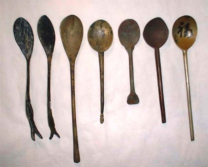 左から高麗時代→現代のスッカラ(匙)だって。なぜ韓国だけ 蓋 を使うのだろうか
