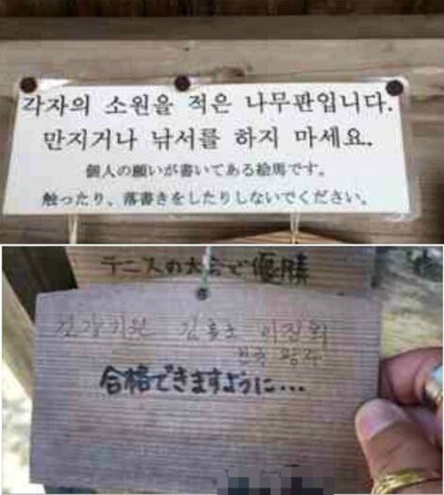 外国人の祈願も受け入れる心の広い日本の神様ですが、元々日本・日本人の繁栄と安全を祈願する神社ですから、その日本の不幸を祈る事は作法知らずで誤った祈願になります。他人の絵馬に便乗して書き込む事は勿論、火を着けたり、破壊しようとしたりする事はもっての他。