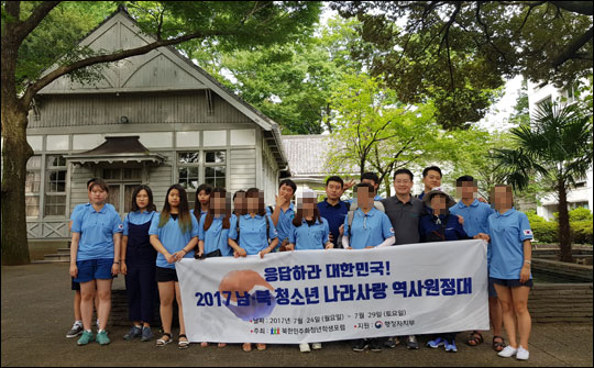 북한민주화청년학생포럼(대표 박광일) 남북 청소년 나라사랑 역사원정대가 24일 일본 가쿠슈인대학교를 방문해 기념촬영을 하고 있다. ⓒ데일리안戦後の在日朝鮮人の中に、多くの韓国人からの虐殺やレイプから逃れる為に日本に亡命して来た、北朝鮮人や韓国人が居る(⌒▽⌒)