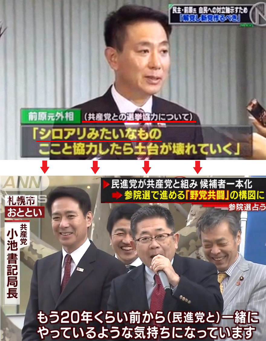 活動方針の違いから一度は袂を別ったけど民進も共産党も元々は同じ穴の狢だからな。