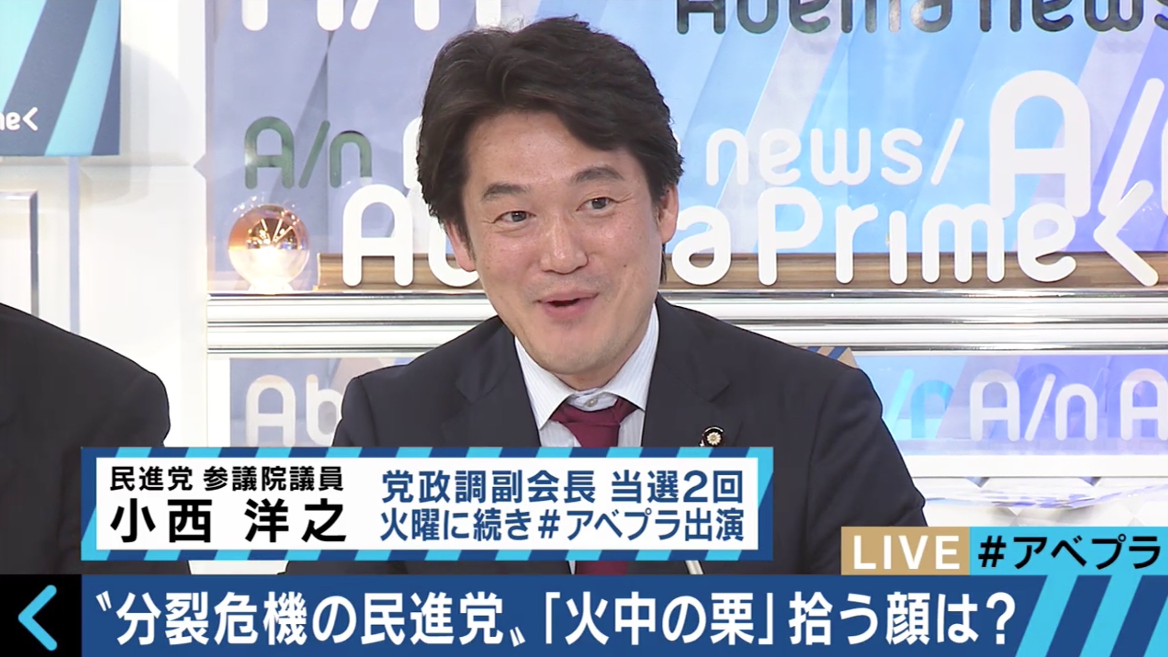 AbemaTV『AbemaPrime』に出演した、総務官僚出身、民進党の小西洋之参議院議員(45)は、「携帯電話業界で言えば、ソフトバンク、au、ドコモなどが生きるか死ぬかの戦いを繰り広げているが、そんな中で会社組織を率いて市場開拓し、良いサービスを提供し、生き残っていく。そういう実行力がある政治家が代表にならない限り、民進党に明日はない。だから今、人気ではなく本当に実力のある政治家で代表選を闘っていかなければならない」と発言。