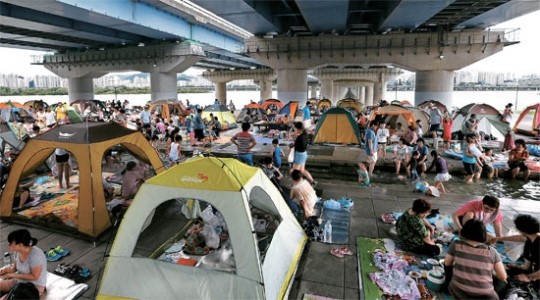 中国人みたいソウル漢江の橋の下がキャンプ場?