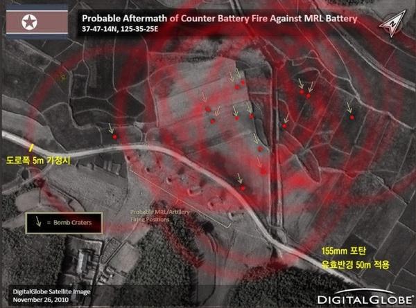 연평도 당시 K9의 대응 사격으로 피해를 받은 북한의 포격 원점을 보면