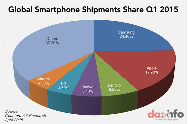 삼성과 LG 스마트폰이 세계 1위로 많은 점유율을 차지하지만,