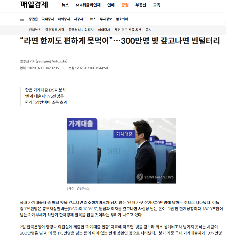 【韓国限界】韓国の限界債務者が300万人を超えた、