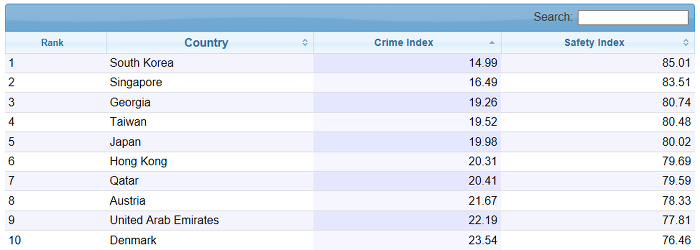 海外のサイトでも、韓国の治安の状態は、良いとするデータと、あまり良く無いとする情報があることを確認できる。