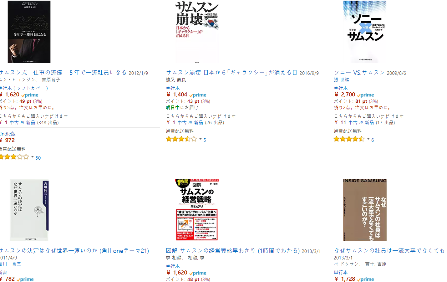 その名残で、韓国のベストセラーに日本の作家が上位に来ることが多い。サムスンという語感は日本人にとって