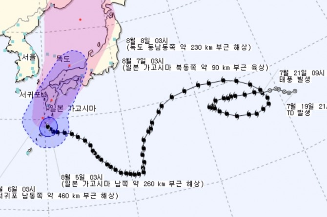 태풍 노루는 일본을 선택했다.