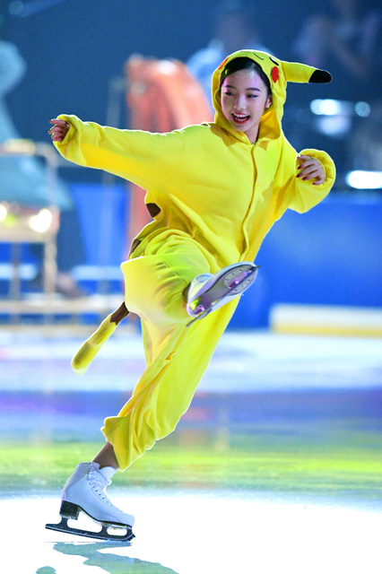 股下のないピカチュウ衣装でビールマンスピン…動きづらいだろうに、凄いな。