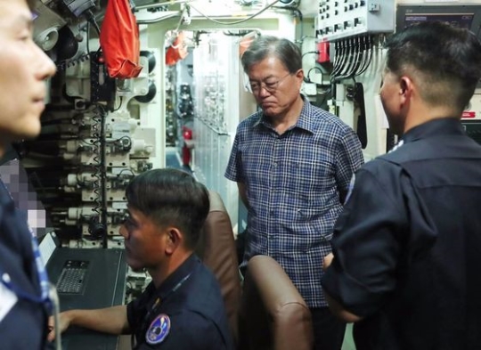 青瓦台(チョンワデ、大統領府)は「現職大統領が潜水艦の内部に入ったのは文大統領が初めて」と伝えた。