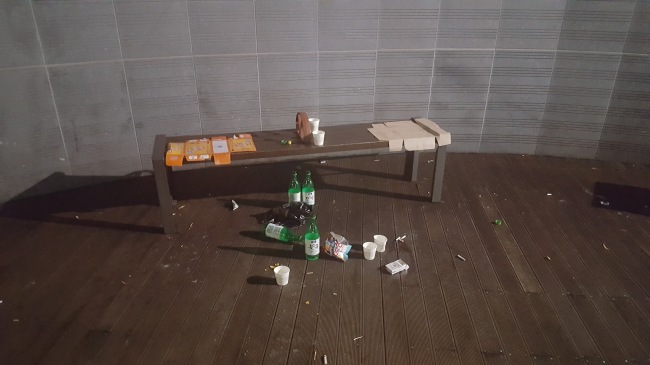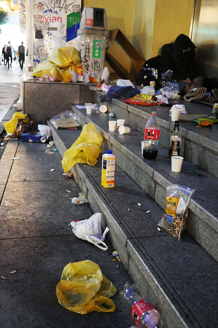 [헤럴드경제=이원율 기자] 지난 6일 오후 8시 찾은 서울 용산구 동자동에 있는 한 어린이공원. 가까이 갈수록 땀 냄새와 음식물 쓰레기 냄새가 섞인 악취가 풍겨왔다. 벤치와 미끄럼틀 아래 등 앉을만한 공간마다 술병이 뒹굴었다. 그늘막 아래에선 노숙인 무리가 소리를 지르면서 말다툼을 벌였다. 근처 3년을 살았다는 주민 이수민(34ㆍ여) 씨는 “매년 달라질 것 없이 반복되는 풍경”이라며 “무슨 일이 생길까 싶어 아이에겐 절대 이 근처로 가지 말라고 당부한다”고 했다.