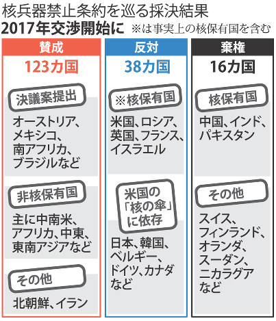 だが米国の核抑止力に依存する日本は条約に「反対」を表明。