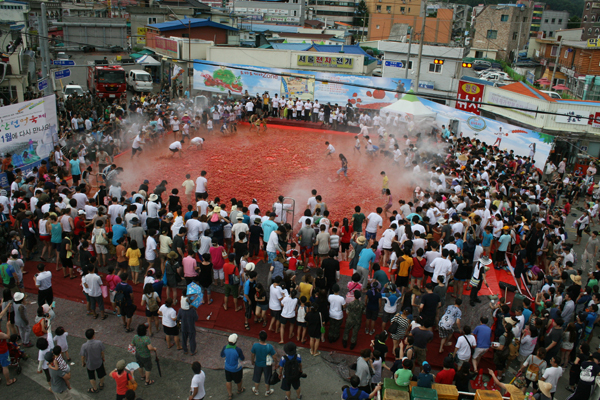 祭りの映像をみると・・・トマトのプールの中でサッカーとかトマトの無駄遣いしまくりの何も考えていない韓国人らしい祭りでした。