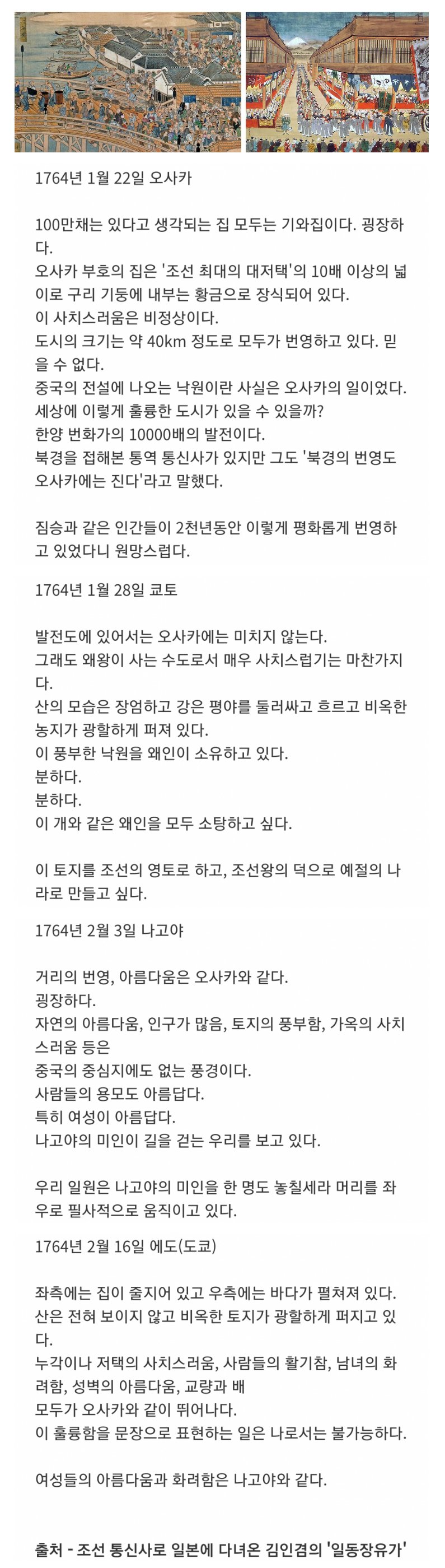 一方 韓国は、貨幣経済を否定し、朝鮮通信使は日本の貨幣経済をバカにしていた…くせに、江戸・名古屋・大阪の大都市に口ポカン、…なのに、朝鮮に【道】が 出来るのは、日韓併合まで無く、水車に至っては、とうとう作ることが出来なかった。