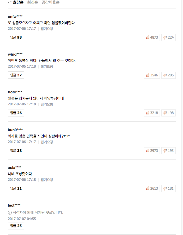 저곳의 익명성의 탈을 쓴 쓰레기들과 동일한수준의 국민성이네요.