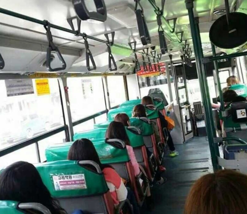 あなたにとって、トイレとバスって同じなの?韓国では、女の乗客は窓側の席を空け、通路側に座らせなければならないので、慰安婦少女像も通路側の席に。しかも前席の背もたれに足を乗せた格好で。足の部分に悪臭を放つ物でも塗ればリアルに完成だ。そんな所に売春婦の守護神像なんか置くと、売春婦が集まってくるぞ。車内で客探しと値段交渉。