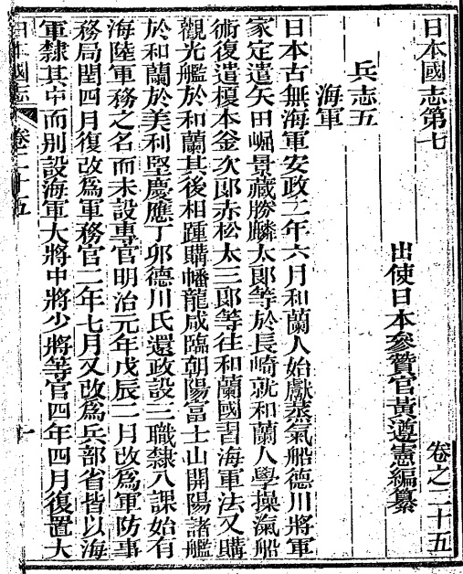 康有為が改革案の情報源としたのが、同志である黄遵憲(日本に赴任し、日本マニアとなった人物です)の著した「日本国志、光緒24年(1898)」でした。