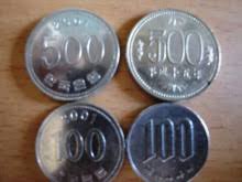 100円玉と100ウォン硬貨、500円玉と500ウォン硬貨を混ぜて、