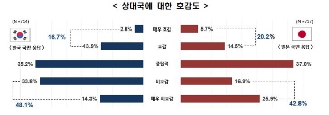이는 일제 징용 피해자들에 대한 한국 대법원의 배상 확정판결을 계기로 한일 관계가 악화일로로 치닫던 시기에 이뤄진 직전 조사(2019년 10월·37.7%)보다 2.7%포인트 오른 역대 최고치입니다.