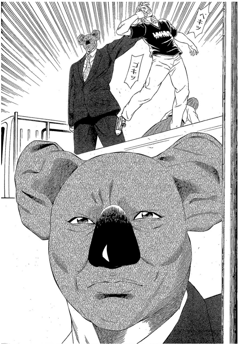 コアラマスクを外したら眼鏡をかけてるんじゃないか?w第一巻を元ネタがわかった上で読んで本気で怒るようなら、その人は手遅れ。