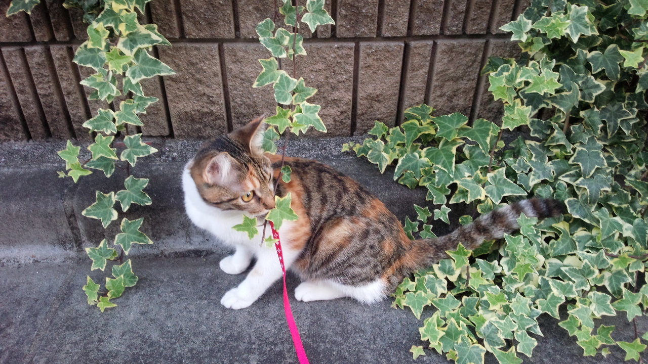 私も、紐を付けて遊歩道を散歩してました。