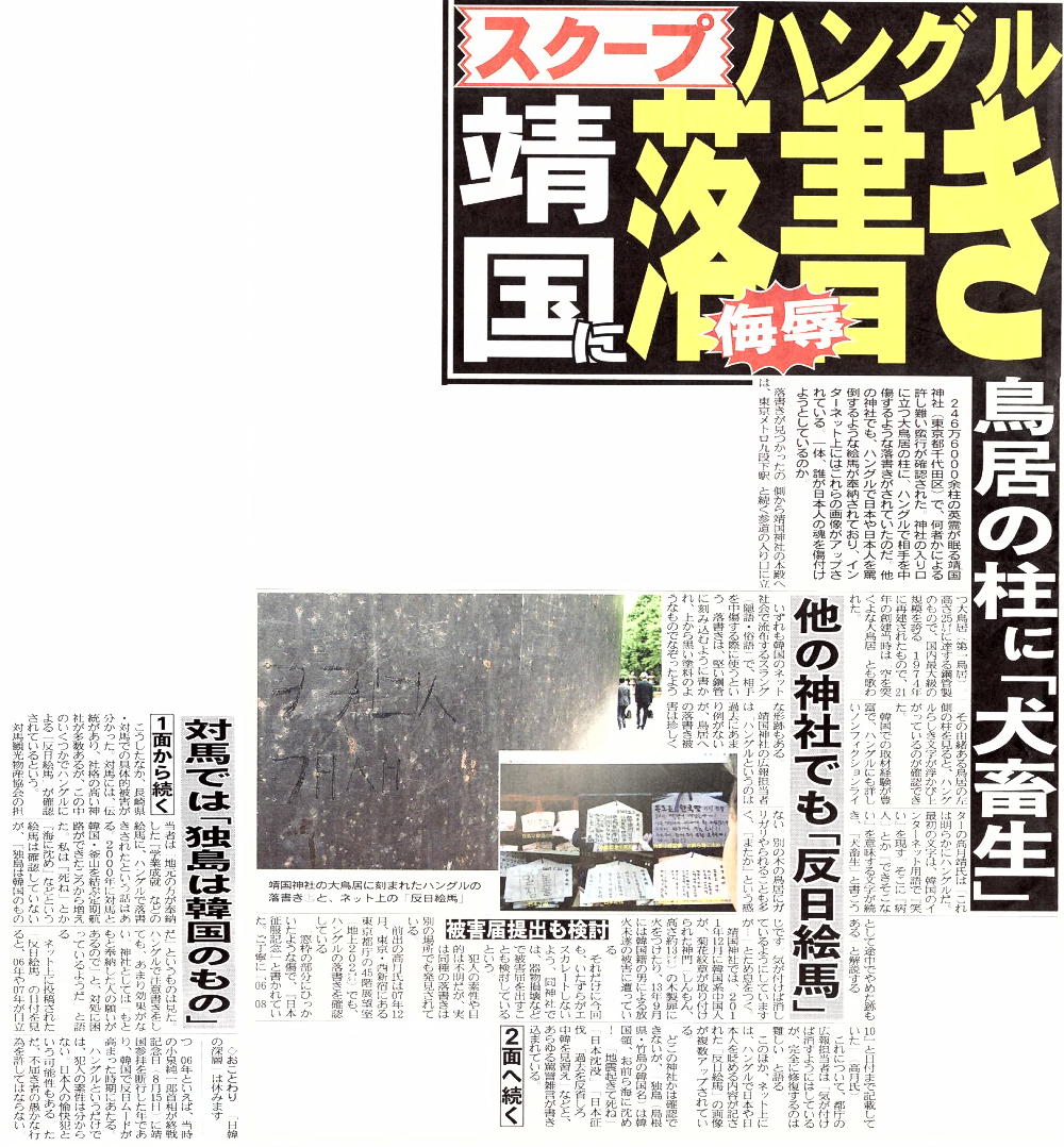 これに先立ち、日本を代表する古刹である奈良の東大寺にもハングルと見られる落書きが見つかり、日本の警察が捜査に入った事実が報じられていた。