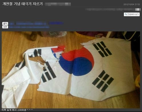 ▲昨年10月に国旗を切り裂いた事件があった、