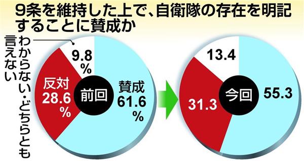 최근 일본의 改憲 지지는 어떻습니까?