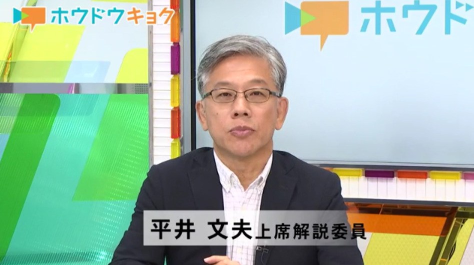テレビ東京に負けそうになり、局内の在日も解説委員を、抑えられなくなったのかもしれない。予防線?