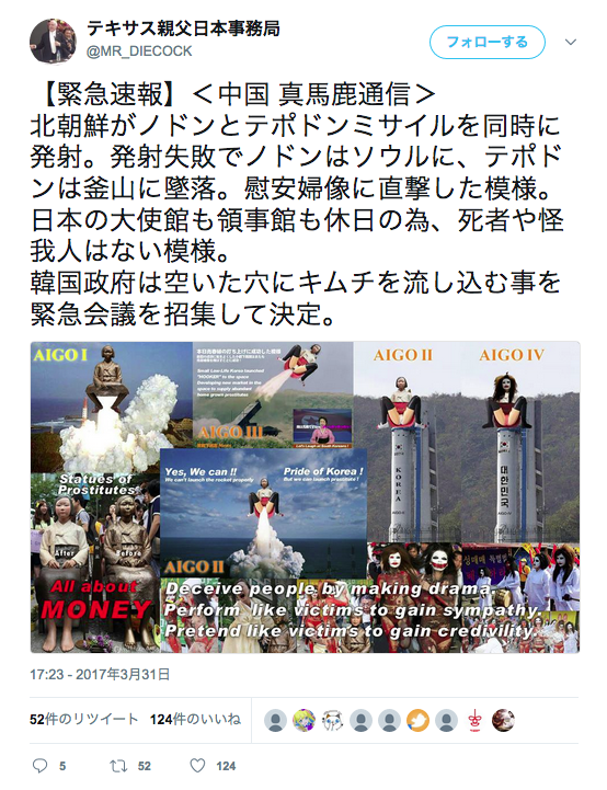 発射失敗でノドンはソウルに、テポドンは釜山に墜落。慰安婦像に直撃した模様。