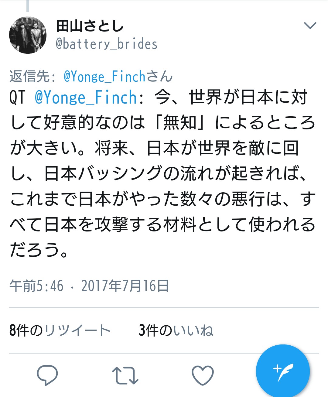 ※田山さとしは韓国が好きになったらしい。アイツは共産主義者のRedemosとSEALDSとか嫌いになっていたからな>>16を訂正する