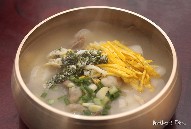 설날엔 위엣 분이 올린 떡국을 먹습니다. 설날에 떡국을 먹는 이유는 흰 이 음식에 한 해를 시작하는 시간의 경건함이 담겨 있다는 생각에서입니다. 한국에서는 종종 나이를 물을때 "떡국을 몇 그릇을 먹었냐 ?"라고도 묻기도 합니다. 그러나 떡국의 유래는 제사를 지내기 위한 음식으로 시작하여서 떡국을 전문적으로 판매하는 곳은 매우 드뭅니다. 떡국 자체의 맛도 한국의 문화를 간접 체험하기 위해서 먹는 것이 아니라면 다른 한국의 대표 음식이 더 맛있을 것입니다. 원래는 꿩고기와 하얀 떡을 이용해서 끓여내지만, 요즈음에는 꿩을 구하기가 힘들어 소고기로 육수를 우려냅니다.
