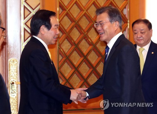 【ソウル聯合ニュース】韓国の文在寅(ムン・ジェイン)大統領は21日、青瓦台(大統領府)で超党派の日韓議員連盟の代表団と会談し、旧日本軍の慰安婦問題を巡る2015年末の韓日合意について「韓国人の期待とはかけ離れたものだった」と述べた。