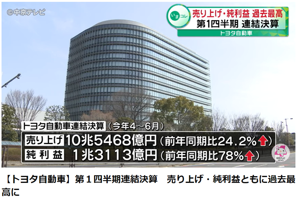 トヨタ 2024年3月第1四半期決算、売上10兆5468億円