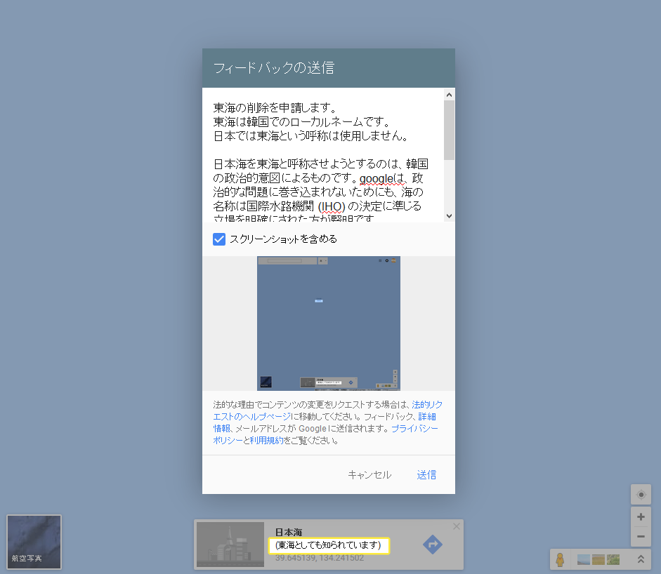 산케이신문은 우리나라와 일본 사이의 동해 표기 논란을 조명했다. 일본에서 구글 지도의 동해와 ‘일본해’ 병기 논란이 불거졌던 지난 20일 트위터에 “외무성은 구글에 다시 항의하라”고 적은 자민당 야마다 히로시 참의원 등 자국의 반응도 다뤘다. 신문은 “외무성이 동해 표기 삭제를 여러 차례 건의했지만, 구글은 응하지 않고 있다”고 전했다.韓国人は被害者コスプレをして国際社会に迷惑をかけるのを止めなさい。