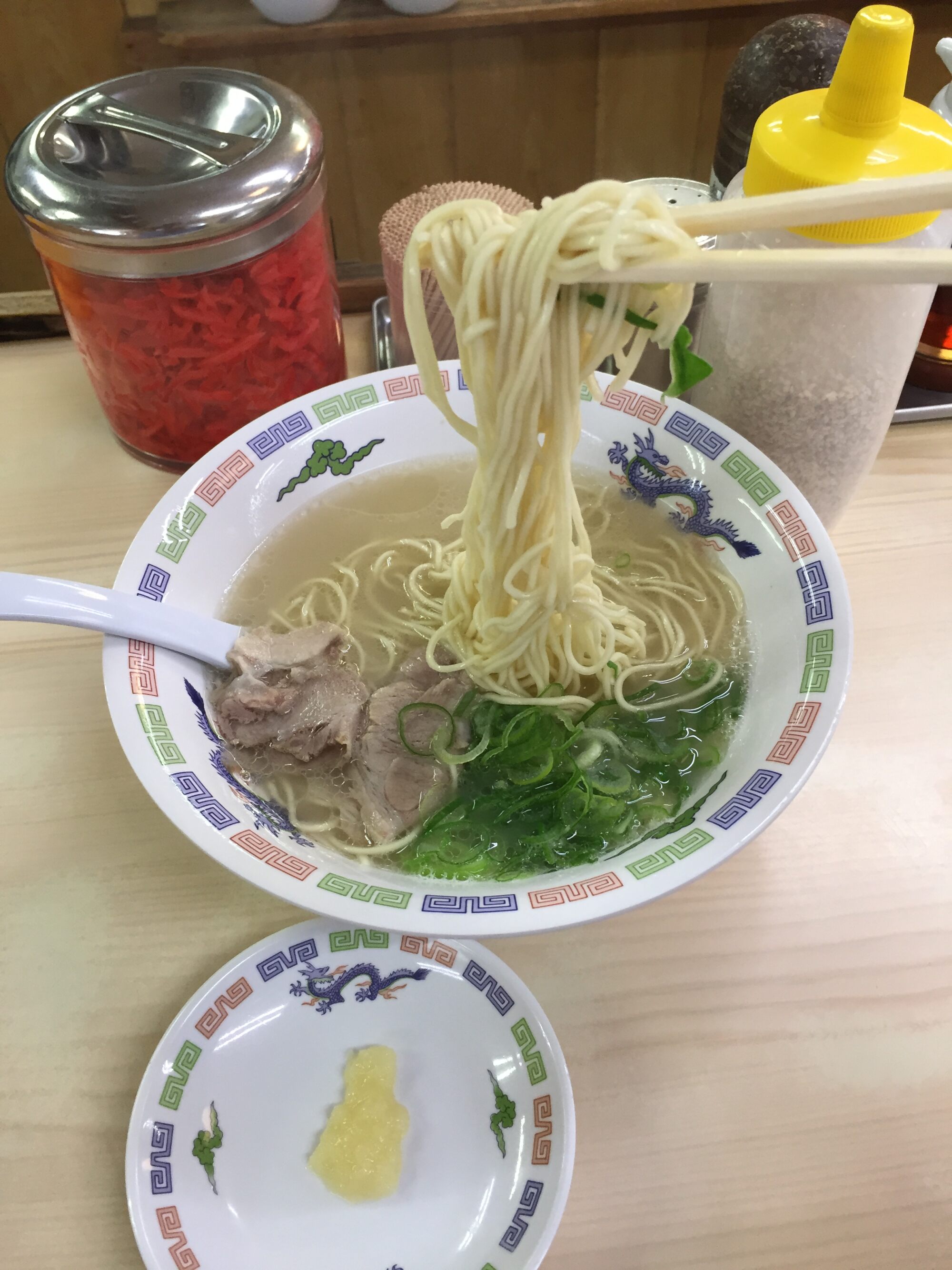 丼は油塗れ、水の入ったコップはまともに洗ってないから飲むと洗剤の味がする。コッテリ系ゆえ飲み物は欠かせず、従って欲しい人は店の前の自販機で烏龍茶を買ってから入店する。定員は愛想というものが欠片もなく(混雑していて忙しかったのだろう)、およそ金を貰って人にモノを食わせる態度ではなかった。客の見ている前で堂々とおたまいっぱいの白い粉末(たぶん化学調味料)をスープ鍋に繰り返しブチ込んでいたが、先輩はこれを「ジロイン」と呼んでいた。人によっては中毒性があるらしい。>>41