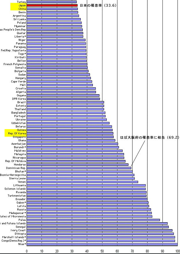 韓国人は相手を馬鹿にして喜ぶ民族だが、同じだけ、韓国人の品格のない民族性が世界から馬鹿にされてることに気付きましょう。日本は人口10万人当たりの患者数が16・1人(25年)