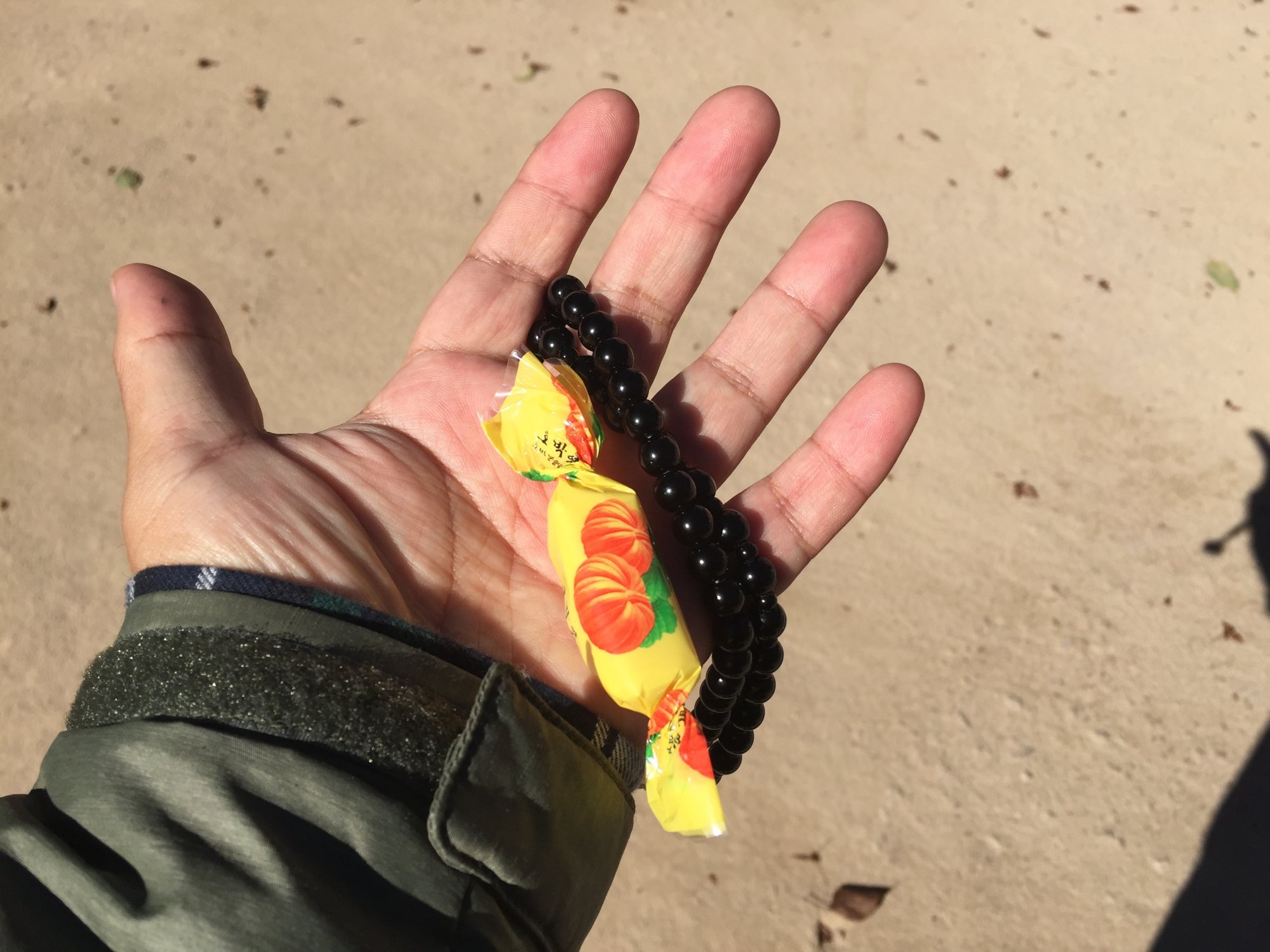 한국 절의 떡 보시를 받은 것 같네요.