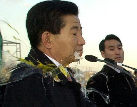 아마 짤렸겠지... 총알도 아니고 계란 하나 못막는 경호원...故人にこんな事するのはやめろ