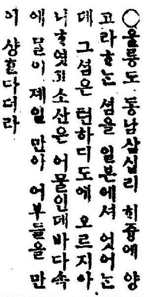 1901年4月1日の大韓帝国新聞「鬱陵島の東南三十里の海中にリャンコ(竹島)という島を日本が得た」