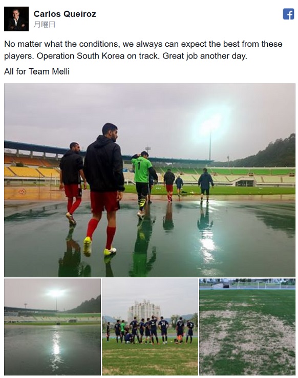 ケイロス監督が苛烈な練習環境をフェイスブックで報告