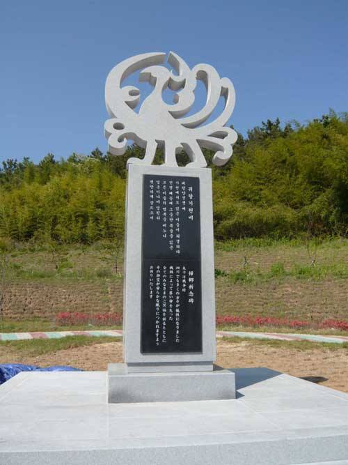 「帰郷祈願碑」と刻まれた碑は韓国・ソウル近郊、竜仁市の寺にある。