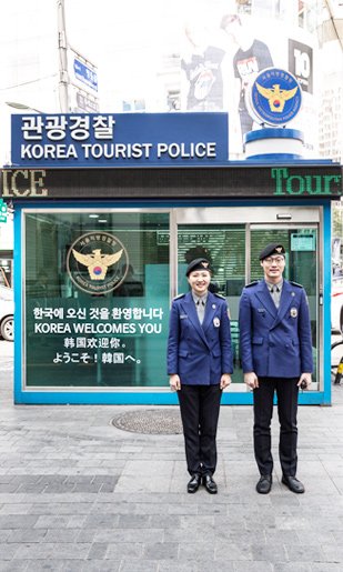 旅行中に何か困ったことがあったら観光警察に相談してみましょう。観光地での犯罪予防や不法行為の取り締まりだけでなく、観光苦情処理、観光案内などの様々なサービスを提供しています。青いジャケットに黒いベレー帽がドレードマークです。