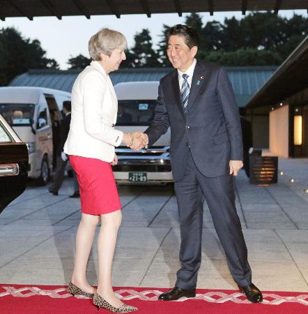 安倍晋三首相は31日、英国のメイ首相と東京・元赤坂の迎賓館で会談した。