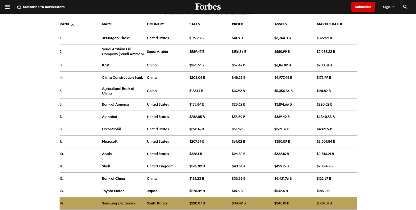 https://www.forbes.com/lists/global2000/?sh=3748abf95ac0そりゃ国内市場も大きい先進国なんだからそんな独占企業は直ぐに解体されるわw
